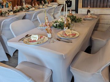We do not allow disposable plastic tablecloths, glasses or table settings. Special pricing for groups of 15 or less.